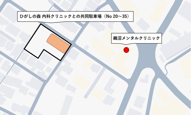 駐車NO 20~35が当クリニックとひがしの森 内科クリニックとの共同駐車場です。